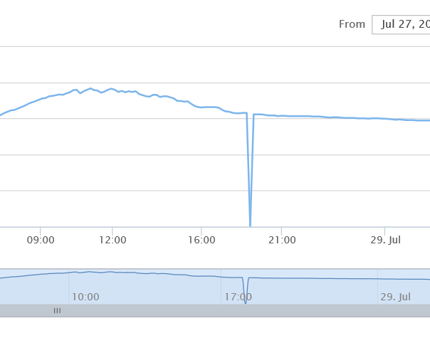 在上傳的數(shù)據(jù)后貝殼會將上傳的數(shù)據(jù)進行圖形顯示,但是由于各種問題數(shù)傳中斷有連上了,中斷缺失的部分圖形顯示為零,這樣曲線出現(xiàn)了“大坑”,不僅影響了曲線的“美觀”,同時由于坐標是自動標尺的,正確的數(shù)據(jù)曲線的細節(jié)就會被縮小,變化被淹沒。建議在端點的前后簡單地用直線連接,而不歸零。