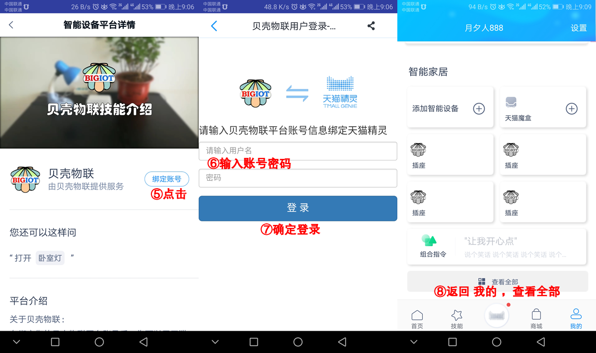 天貓精靈綁定貝殼物聯(lián)賬號(hào)后,即可使用天貓精靈控制貝殼物聯(lián)賬號(hào)下設(shè)備。下面三張圖搞定: