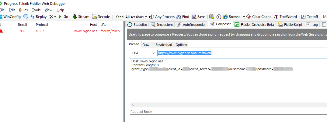 本人嘗試用了Fildder去執(zhí)行請(qǐng)求,但是一直都是Error 400,也嘗試了將參數(shù)放在Body內(nèi)部,還是不行。